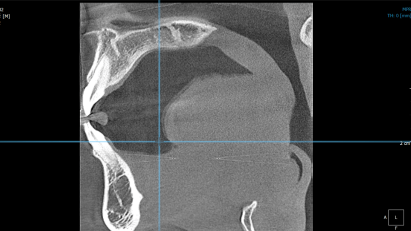 スライス撮影したエックス線データはパソコン上で再構築して、3次元で表示することが可能となります。患者様を適切な位置に位置付けをさせていただき、細かい調整をしたのちに、歯科医師が撮影を行います。