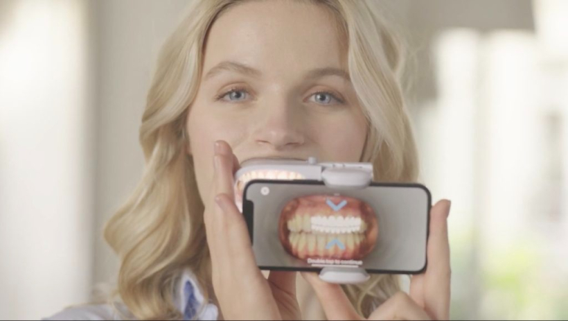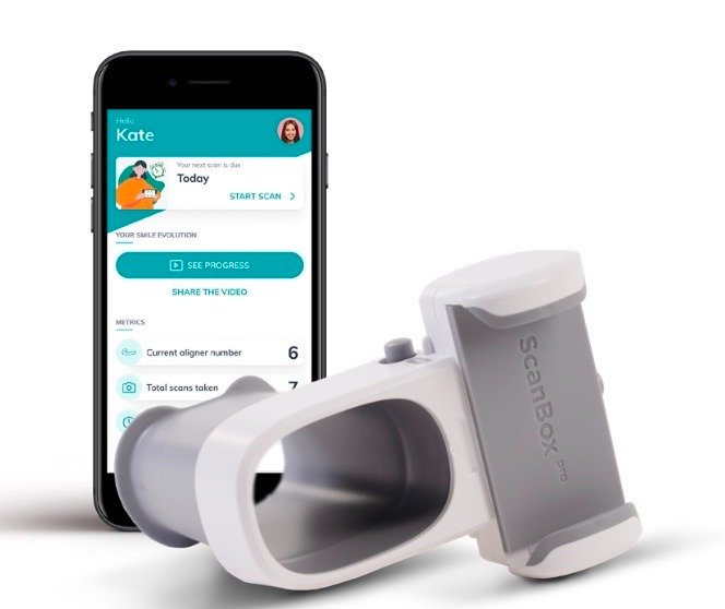 デンタルモニタリングとは、患者様のスマートフォンのカメラで撮影した画像を解析してインビザラインのアライナーと歯牙のフィット状況をAIを通じて解析する装置です。