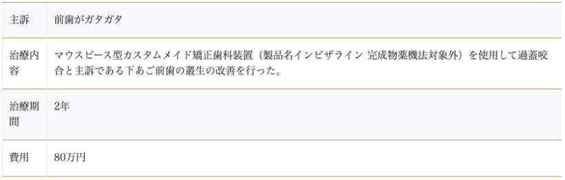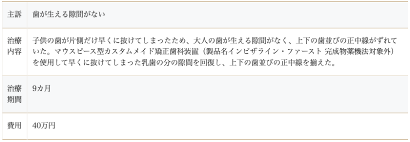 マウスピース型カスタムメイド矯正歯科装置(製品名インビザライン・ファースト 完成物薬機法対象外)による矯正治療が提案されました。