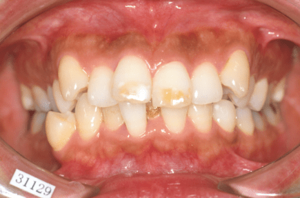 叢生がある方ですと、歯磨きが難しいのでお口の中をきれいにするのに多くの時間を必要とします。ご自身の歯磨きが難しい部分を理解して、毎回時間をかけてきれいにしていただければよいのですが、それができませんと叢生の部分は不潔になりやすく、虫歯や歯周病に罹患しやすくなってしまいます。