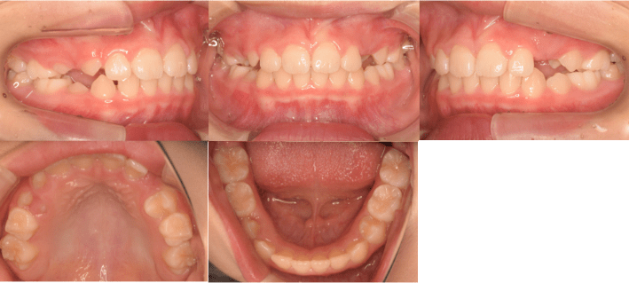 • 診断:上顎左側乳犬歯の早期脱落による正中線の不一致を伴う過蓋咬合