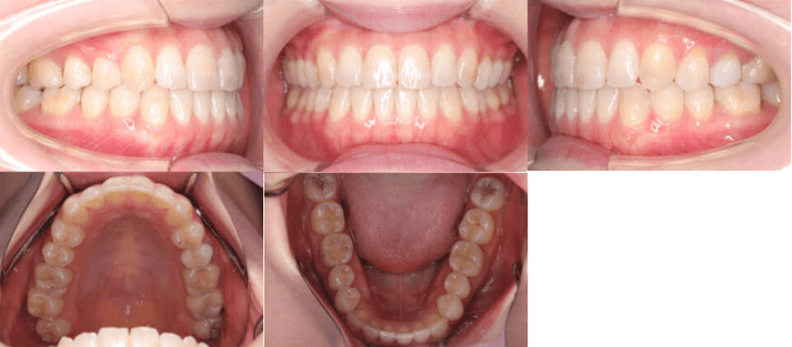 - 診断:前歯部交叉咬合を伴う叢生